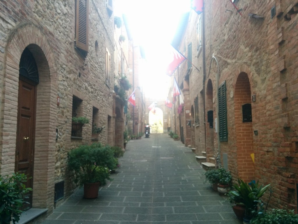 The next day I rode to Seina. That weekend conincided with the celebration of the winner of the anual Palio di Siena. A horse race around the main square. All the colors of the local districts painted the square in multiple rainbows.
