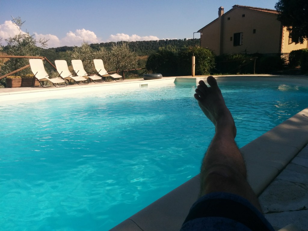 The next day I had a short ride and got to enjoy two nights at an Italian farmstay, known as Agritourismo. A day at the pool to rest the legs with a touch of sun burn was a day well spent before I headed north west to Pisa. It was a fast early ride as I need some good aftersun care. I was still able to enjoy the scenery but that cold shower was magical.