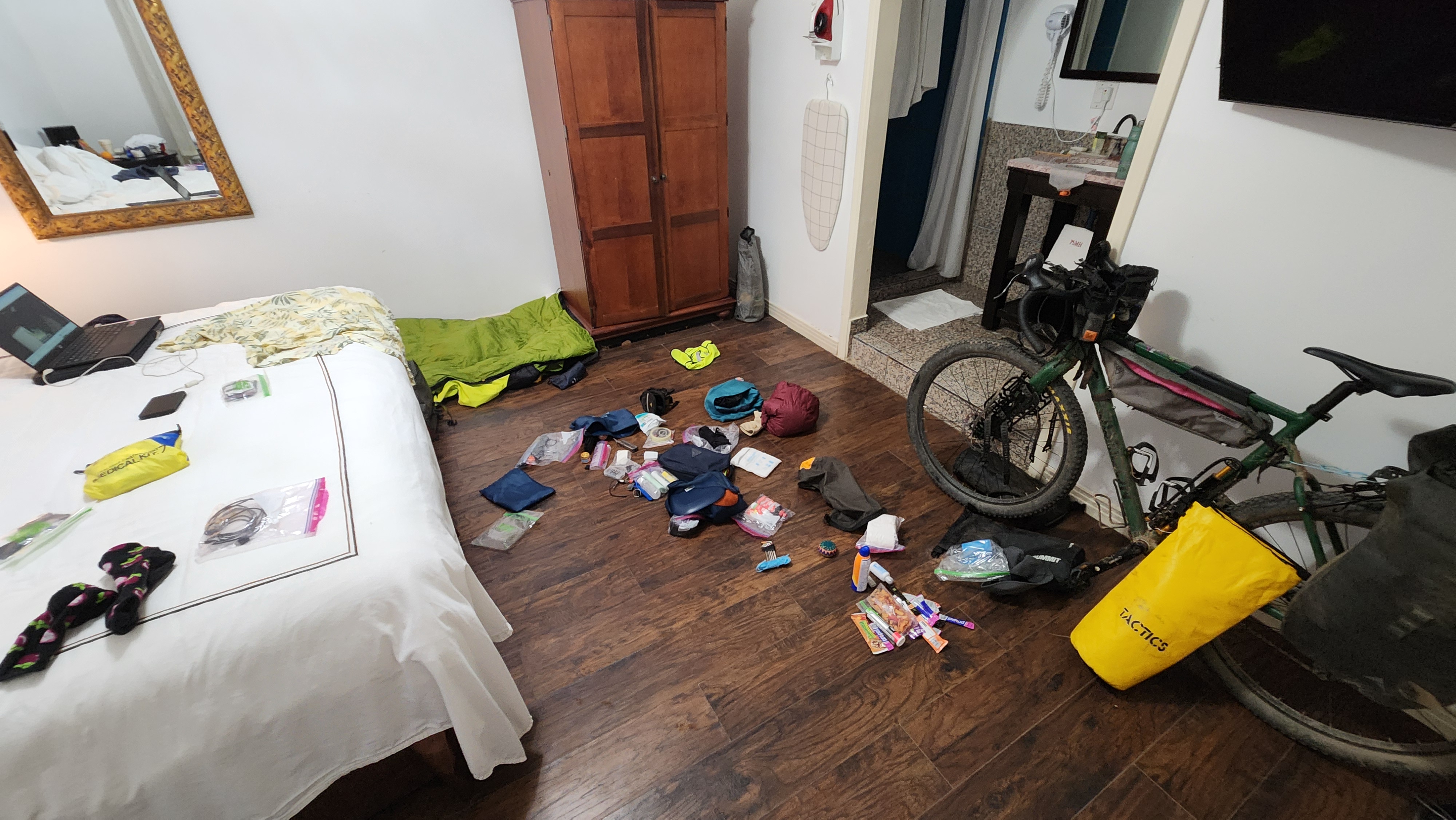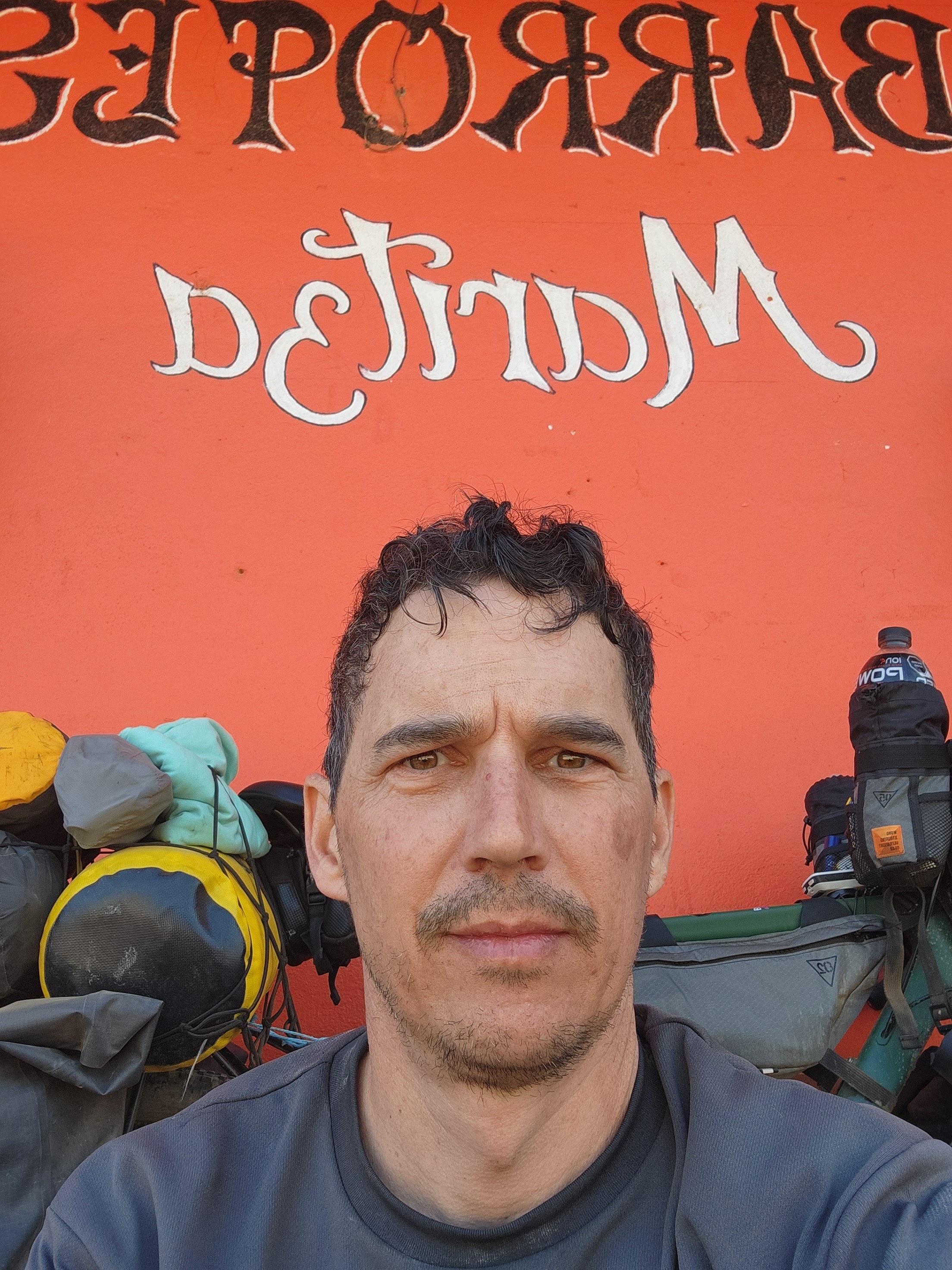 My first road side tacos and a giant fresa. I really enjoyed this and helped distract from the crappy road. Repacking and reorganizing my gear.