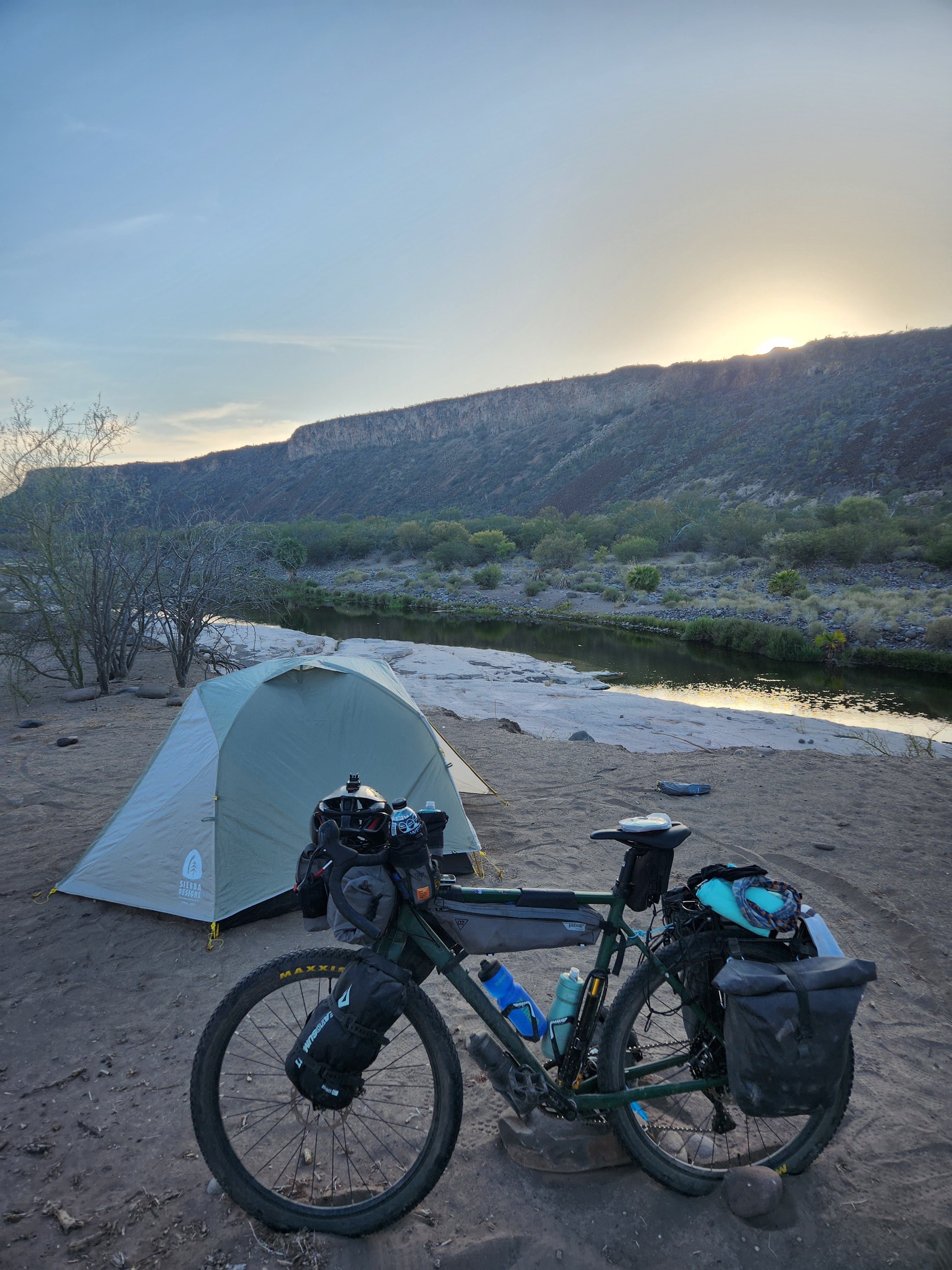Once I felt better I had about 210 kilometers to La Paz. A flat road and a wonderful tail wind. For just a moment I thought about making it in one day but that was going to be a long shot. I did do my longest ride that day of over 130 kilometers but I paid the price of having nowhere to camp, as the family home I was hoping to camp at was deserted. It was already late in the afternoon and I needed to find a place to camp. There was a little side road next to the highway bridge and so went down that way. There wasn’t much down there but I was out of options. I set up camp with cars and trucks thundering overhead and with the light fading quickly. Normally I can roughly identify the animals during the night. But that evening something, or someone walked by that I wasn’t quite sure what it was. Considering everything I slept well and the final push for La Paz was on.