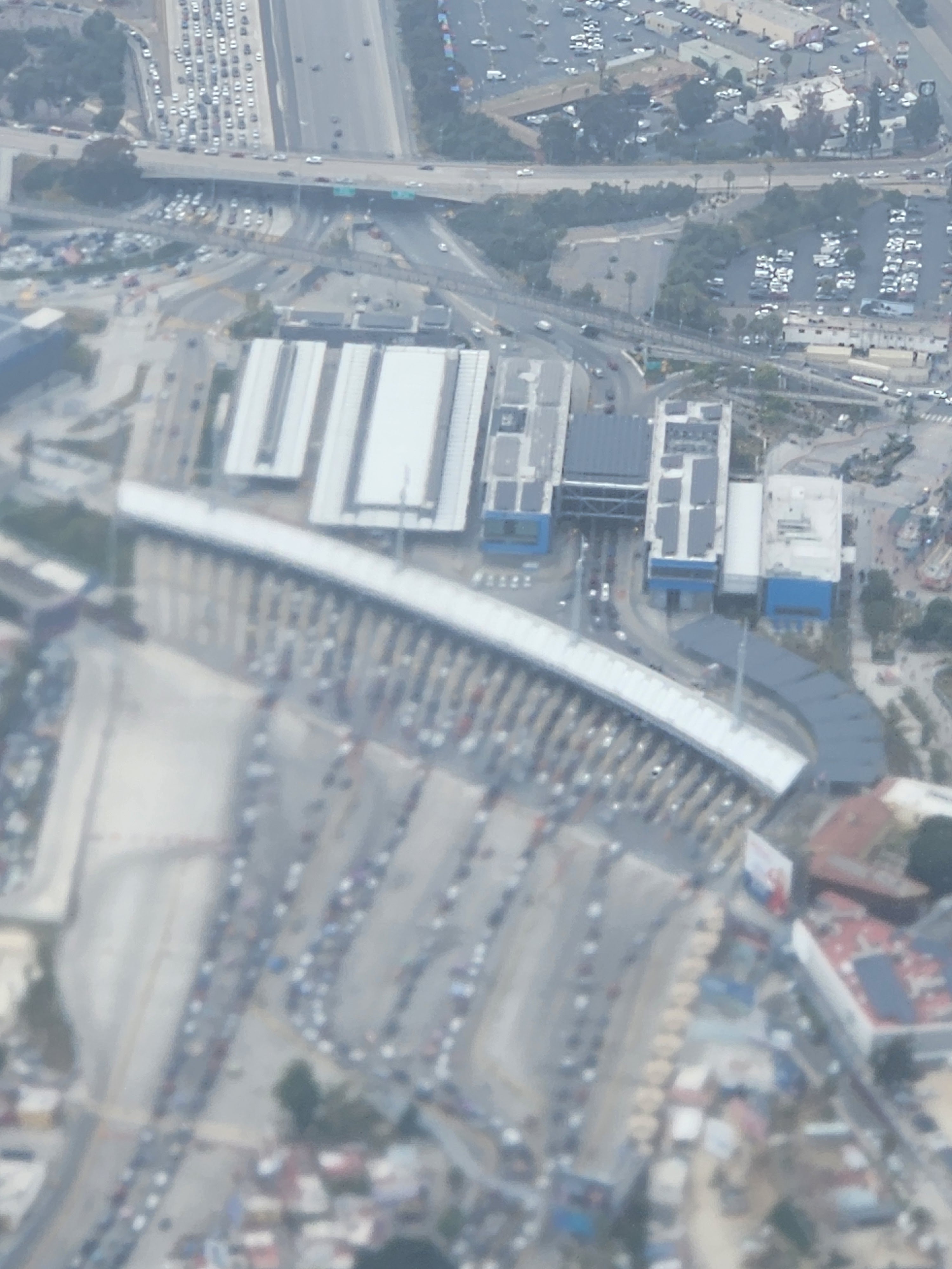San Ysidro border crossing from the air. One of the largest in the world. And this guy is very happy to be back in La Paz.