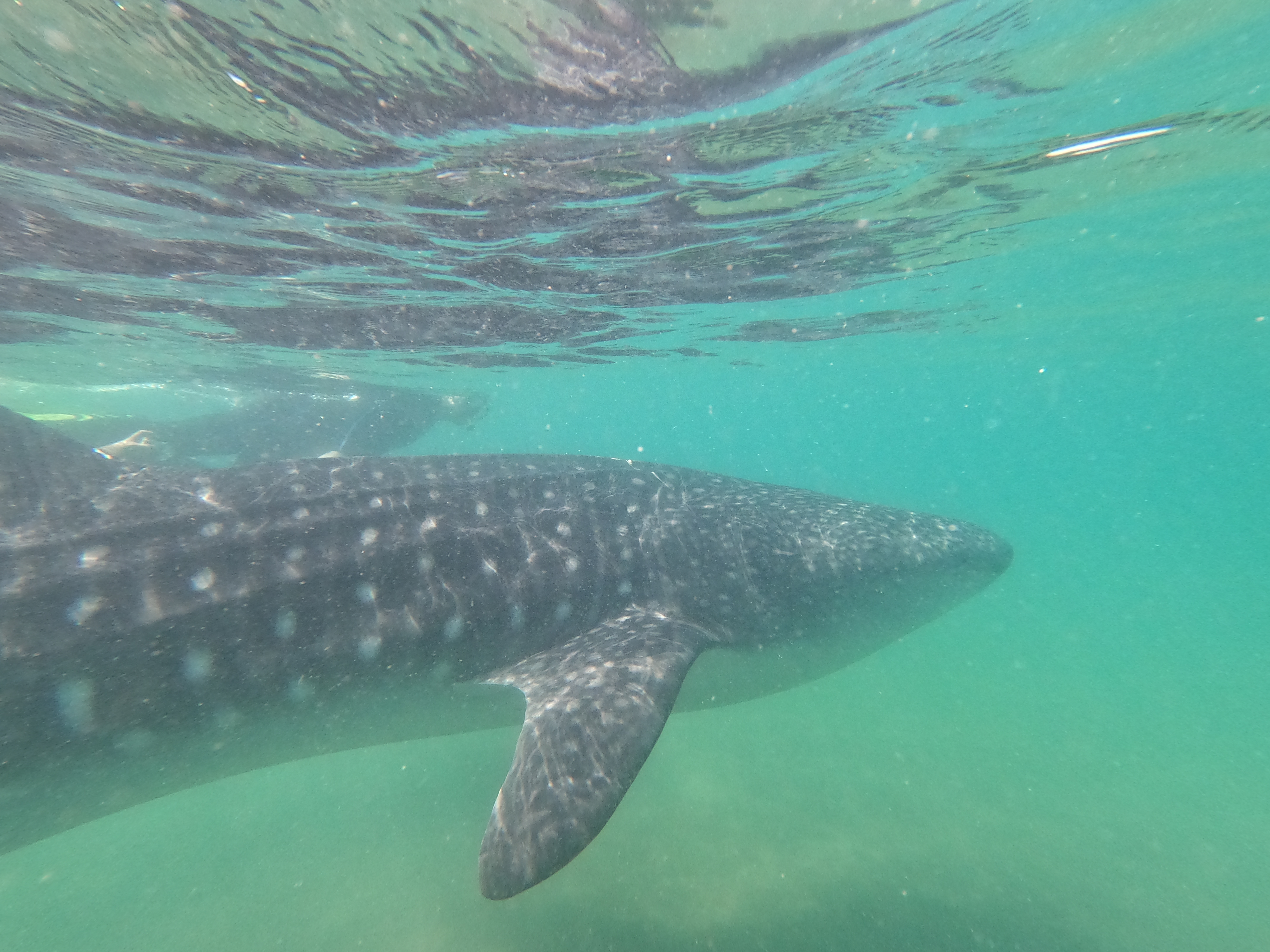 Wednesday I was strolling around La Paz and I found a dive shop that was doing a whale shark tour the next day. This happened to be my birthday. I decided to treat myself as it was a little pricey but I hoped it would be worth it. The answer was yes, it was worth it. We departed the harbor at 7:30 and headed to the sanctuary check point, and then we crawled towards the sand bank where juvenile whale sharks spend their time eating plankton and growing up before they head out of the sea of Cortez. Our guide gave us a long lecture on how to behave around them and obviously the rules included, look don’t touch. I was lucky to be doing a tour with members of the International Union of Conservation of Nature (IUCN). They are in charge of the red list of threatened and endangered species. They were in La Paz for a conference and were spending their last day on the ocean. I was enthralled by their stories both as an organization and as individuals of things they had achieved and done through their lives. It was an honor to meet such amazing people dedicated to nature conservation. I got to see what people can do when they are dedicated to a good cause. I wish them the best in their mission and hope one day I get a chance to volunteer. The diving with the whale shark was stunning and enriching. I felt privileged to just be in his presence. On my second swim with him, my GoPro wasn’t working, so I spent ten minutes just swimming alongside, trying to appreciate every aspect of him. I could have swum alongside this gentle giant all day long. I would do it again in a heartbeat. The ocean continues to surprise me.
