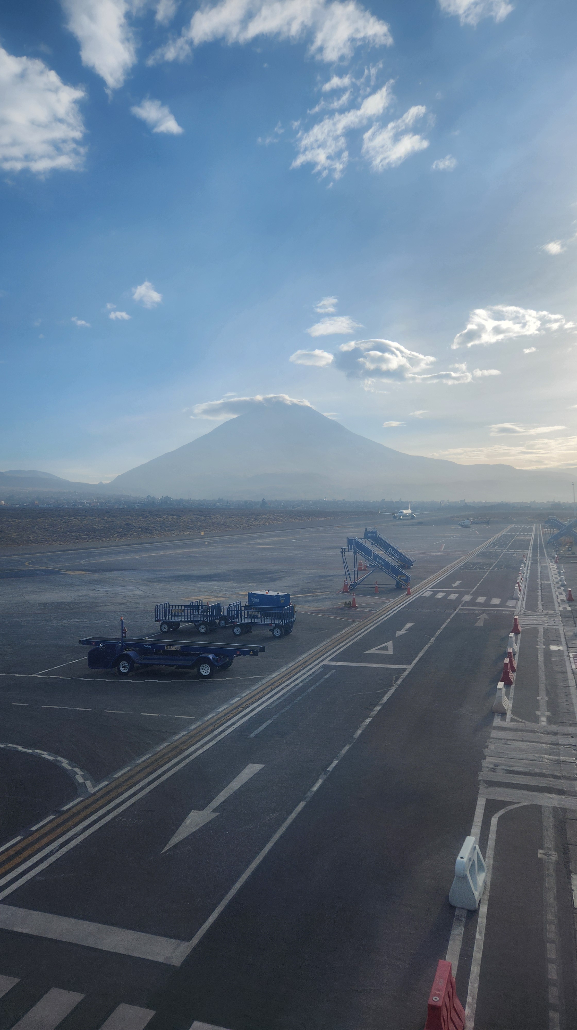 View of Misti Volcano from Alfredo Rodriguez Ballon International Airport. Me and my first alpaca.