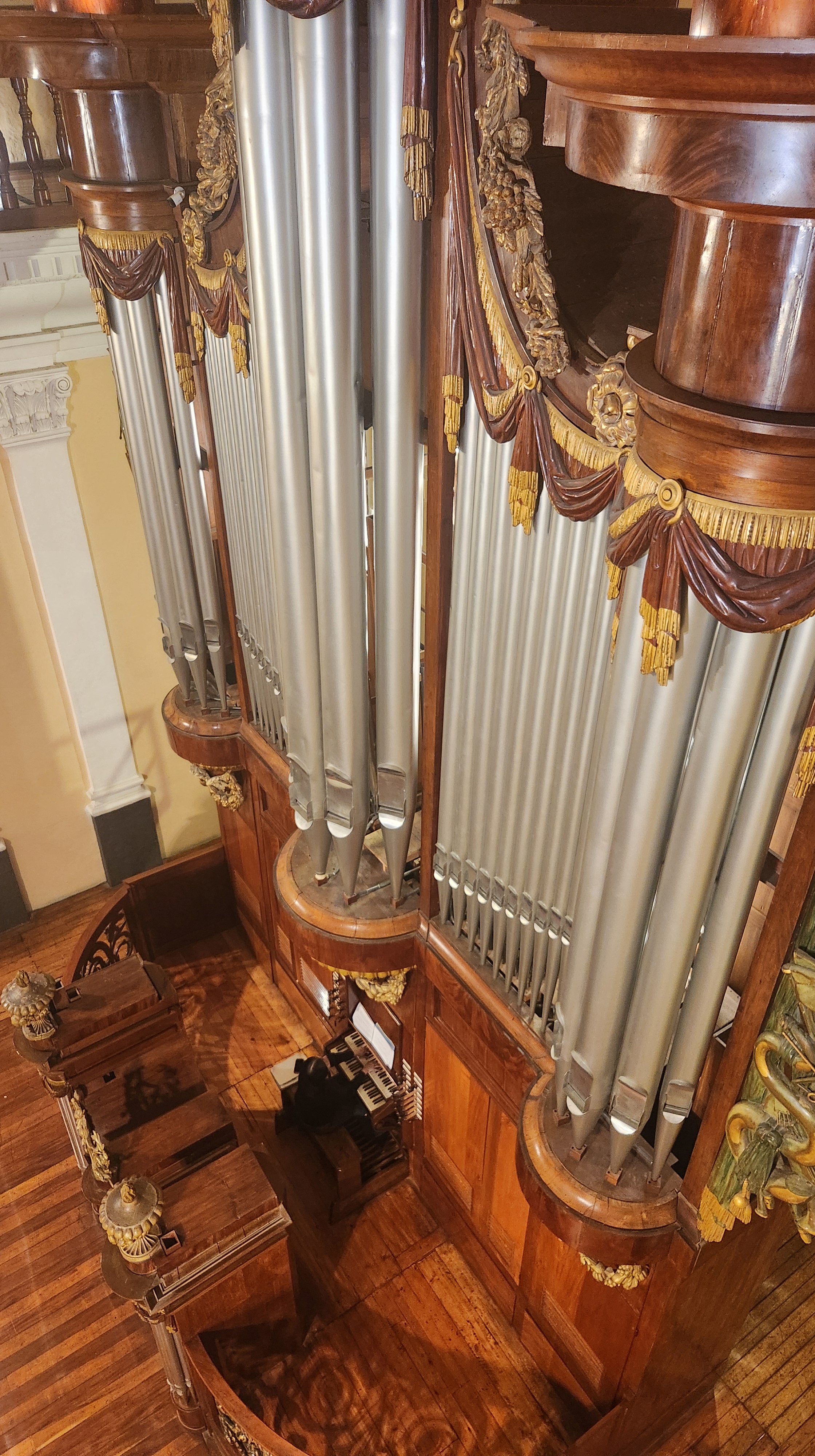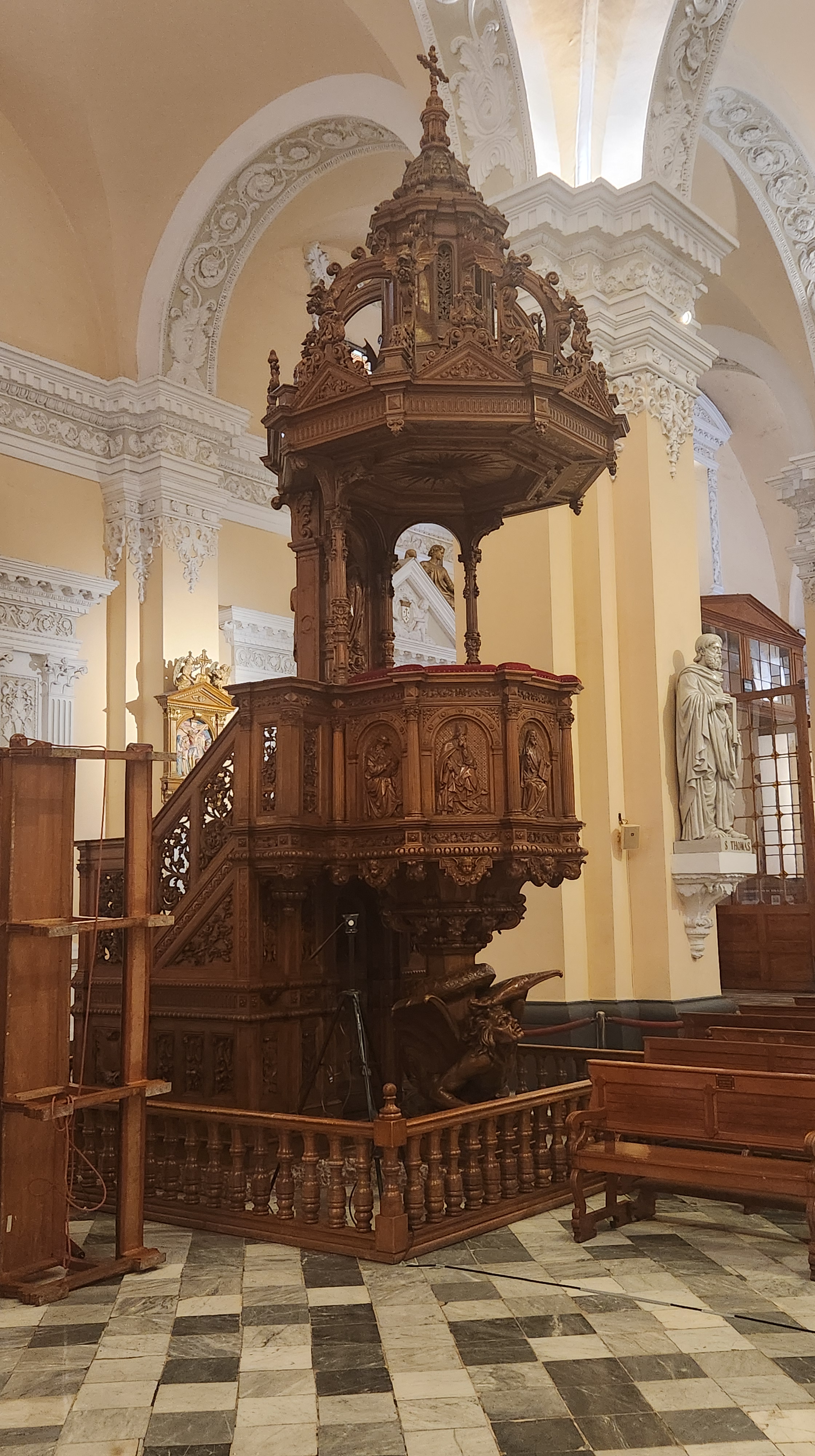 Touring the Basilica Cathedral of Arequipa. Witrh its pulpit made in France and the giant organ made in Belgium.