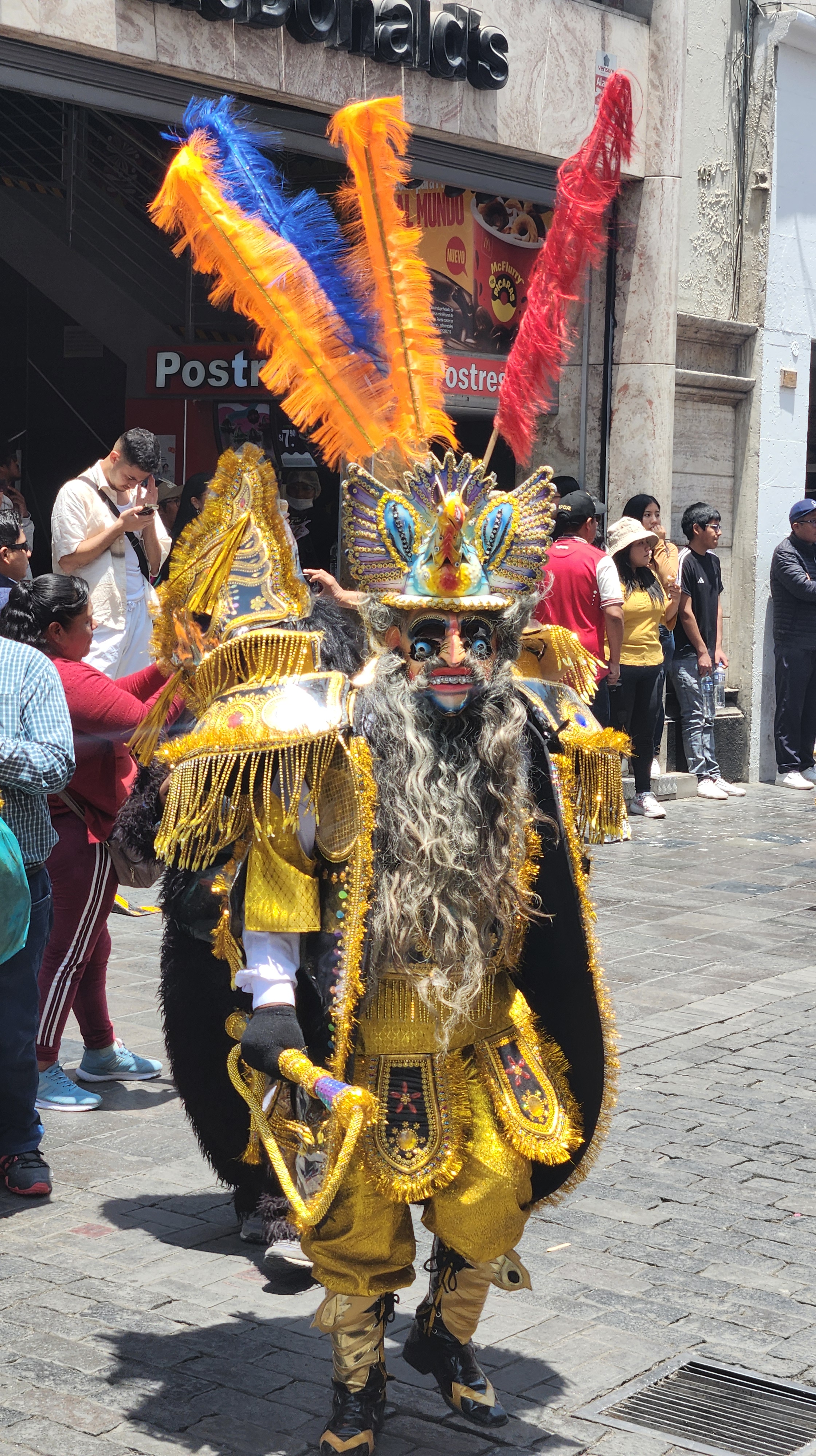 One of the many groups of colorful dancers passing in front of the cathedral. The most colorful dancer I saw on the day.