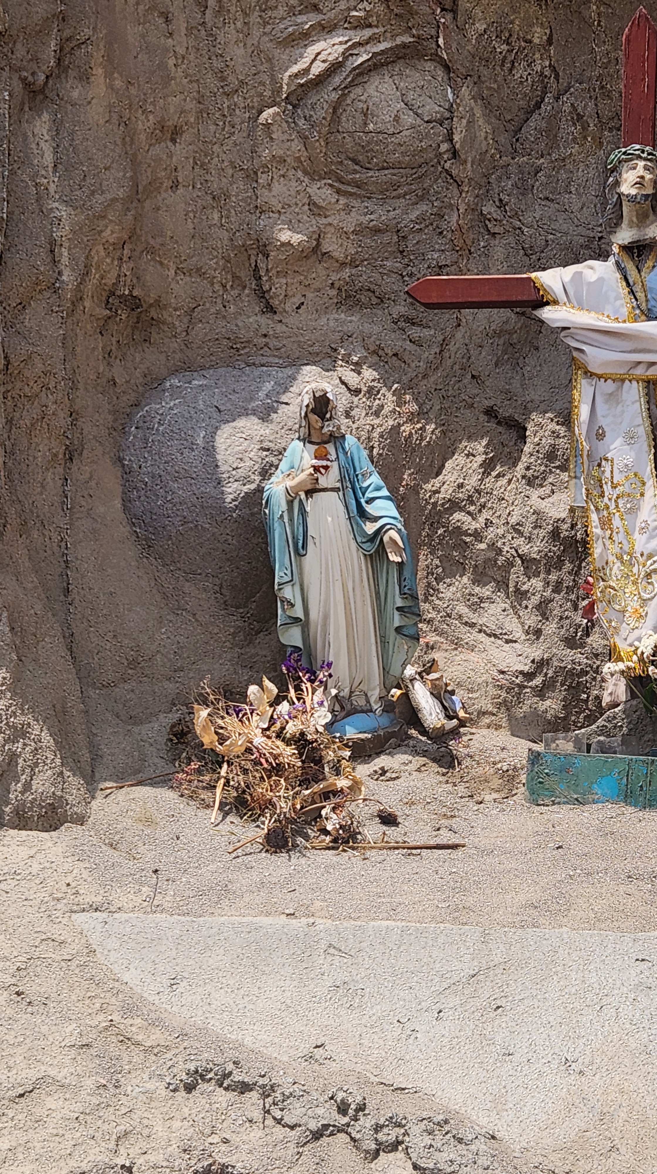 On the road to Pocsi and the camp site. A virgin Mary on the side of the road for a moment of spiritual reflection.