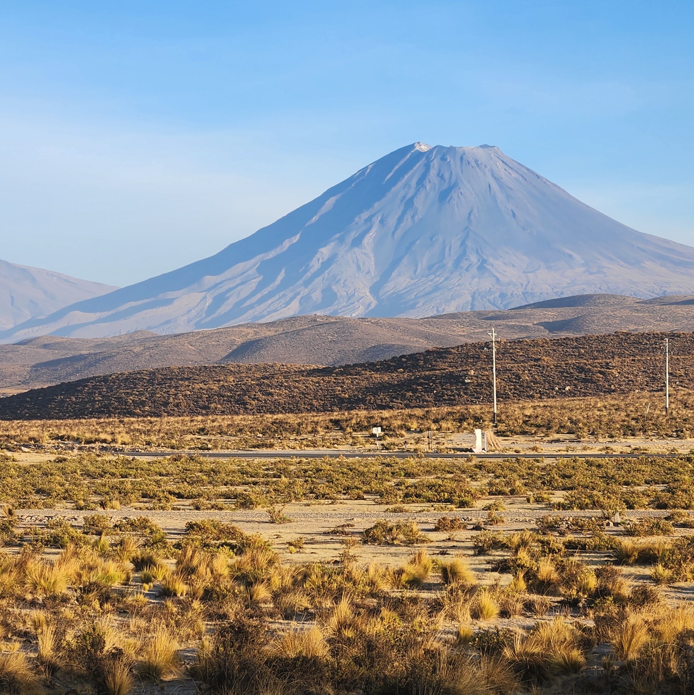 Exhausted and with my bike box in tow, I cleared customs. The midnight hour did nothing to thin the crowds. Jorge Chávez Airport was still packed with people. I made my way to the check-in desk, only to discover that check-in wouldn’t open for another two hours. So there I sat with my giant bike box, unable to go to the toilet or find something to eat. Eventually, I boarded my final flight to Arequipa. The dawn landing was stunning, with the skyline dominated by El Misti volcano.